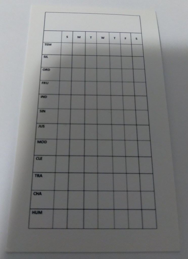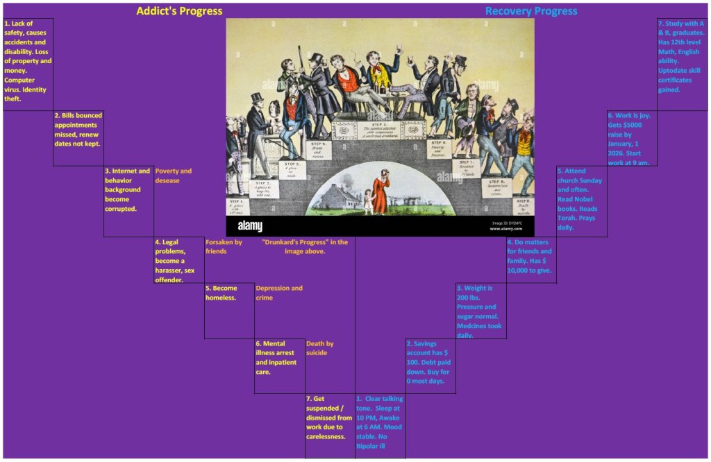 The above table can be made in business card size. Carry 52 cards over a year can heal addiction.